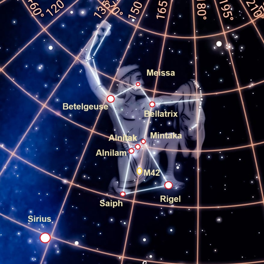 Sağ omuzdaki Bellatrix; sol bacak tarafındaki Saiph…